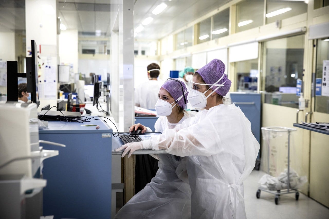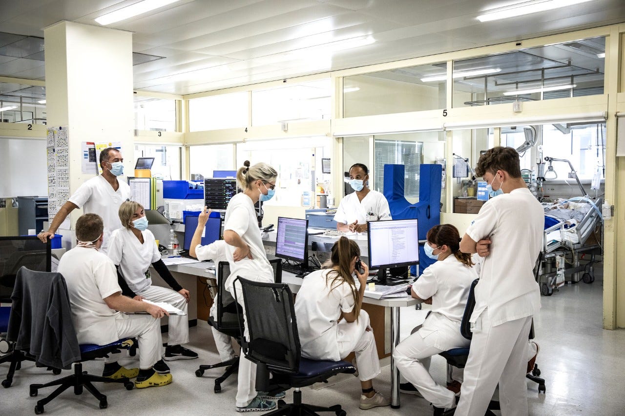 Although the ICU staff are under enormous pressure as a result of the corona crisis, the mood is surprisingly relaxed: friendly faces, frequent laughter; someone rubs their hands and arms with disinfectant, passes the bottle to a colleague and leaves the room with a spring in their step. Hans-Ruedi Räz calls this “professional composure”, which is essential in a hospital. What really makes their day is when a patient who was seriously ill returns to the hospital after their recovery to thank the staff for giving them a second chance at life: “Then we really know that we made the right decision.”