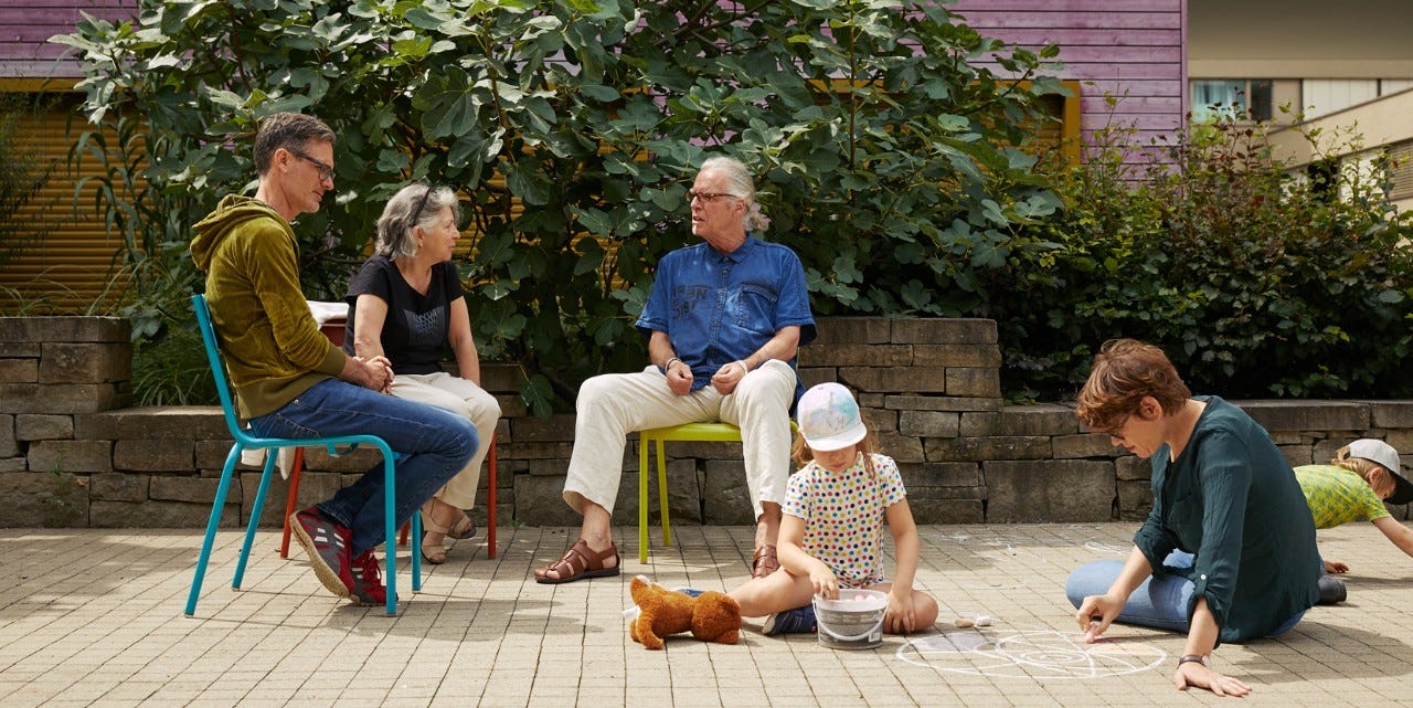 Christian Schaad erinnert die Siedlung, zu der unter anderem auch eine Kita, eine Beiz und eine Gruppenpraxis gehören, an «ein Dorf mit ganz normalen Menschen, die auch mal Konflikte austragen, aber den festen Willen haben, in einer Gemeinschaft zu leben und vieles miteinander zu teilen». So schätzen seine Partnerin und er die beiden Whatsapp-Familienchats, wo von gerade fehlenden Windeln bis zum Piccolini-Zmittag mit den Kleinsten alles verhandelt werde. Hans Suter pflichtet bei: «Bei uns wohnen offene, sehr kommunikative und sozial engagierte Menschen, und – vielleicht eine Folge dieser Mischung – mit 60 Prozent deutlich mehr Frauen.»