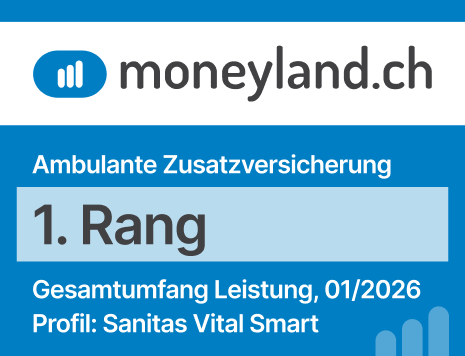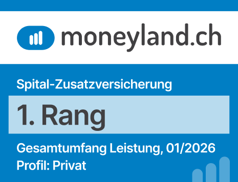 Jährlich untersucht der unabhängige Vergleichsdienst Moneyland.ch die Produkte von Krankenversicherungen. Beim Kriterium «Gesamtumfang Leistungen» haben wir es bei der neusten Umfrage gleich drei Mal auf den 1. Platz geschafft. Für uns sind diese Auszeichnungen mehr als nur Anerkennung. Sie sind der Beweis, dass sich unser Engagement für erstklassige Qualität für unsere Kundinnen und Kunden auszahlt.