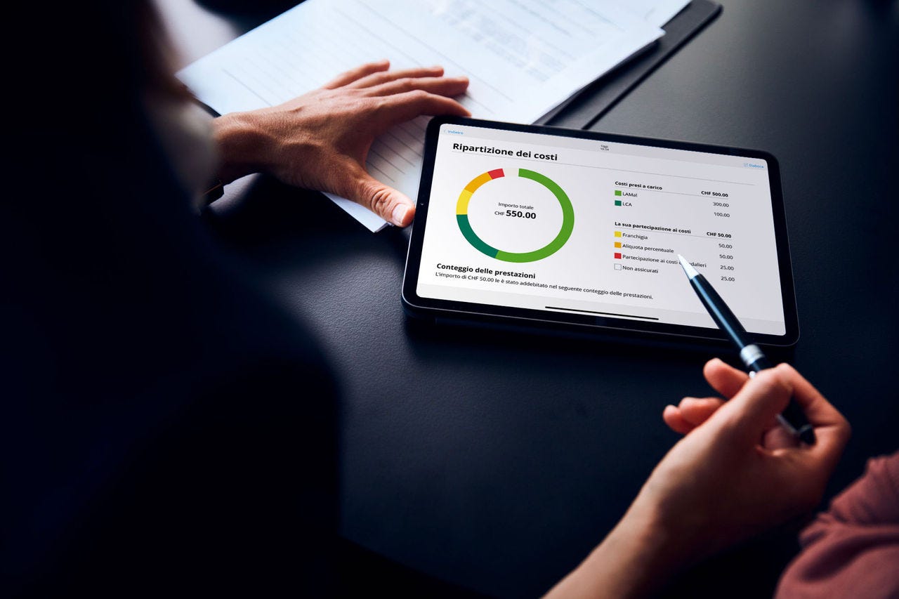 Nell’app scansionate i giustificativi per il rimborso semplicemente con la telecamera del vostro cellulare per inoltrarli. I dati personali, la franchigia o il modello assicurativo possono essere modificati in un batter d’occhio. Le fatture possono essere pagate comodamente con TWINT, carta di credito o Apple Pay.